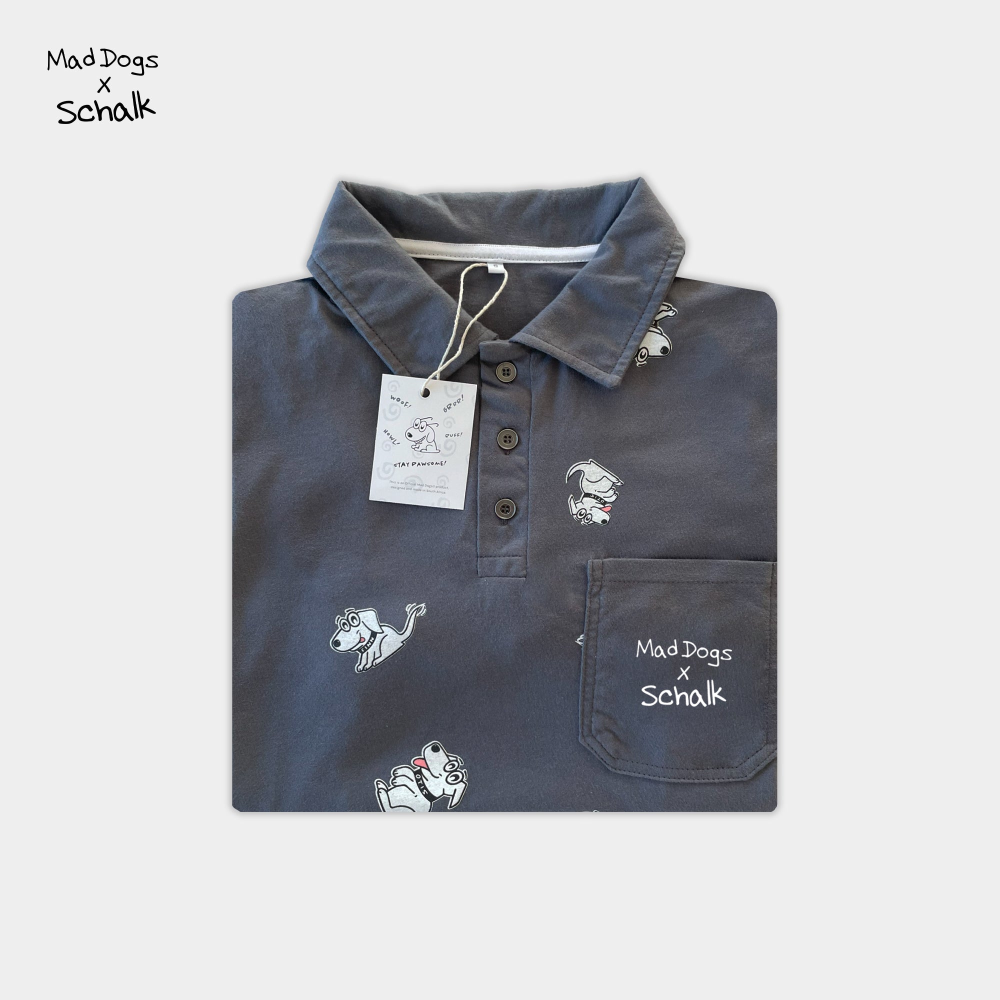 Inside your delivery box, you will find a personal thank you card from Schalk himself! These cards are exclusive to the Mad Dogs® x Schalk capsule collection.